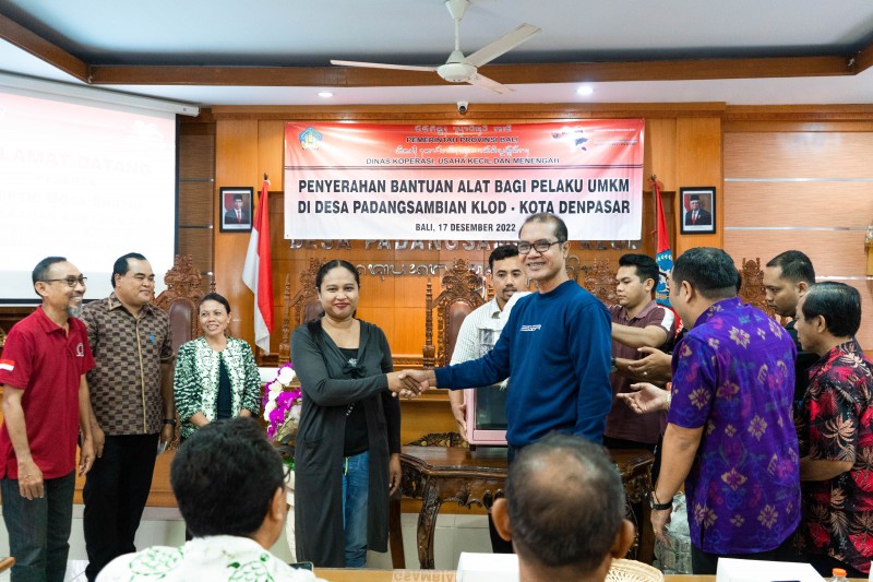 Penyerahan bantuan alat masak berupa microwave, steamer dan mixer bagi pelaku umkm Kerthi Boga Santhi, kegiatan ini dilaksanakan oleh Dinas Koperasi Usaha Kecil dan Menengah Provinsi Bali yang beke...