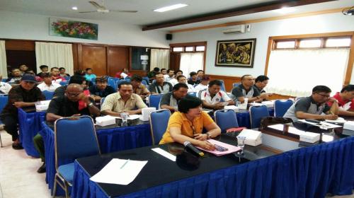 Rapat Koordinasi Pengarakan Ogoh-ogoh dan hari raya nyepi di gedung Graha Praja Mahottama kantor desa Padangsambian Klod